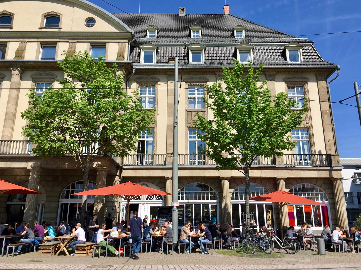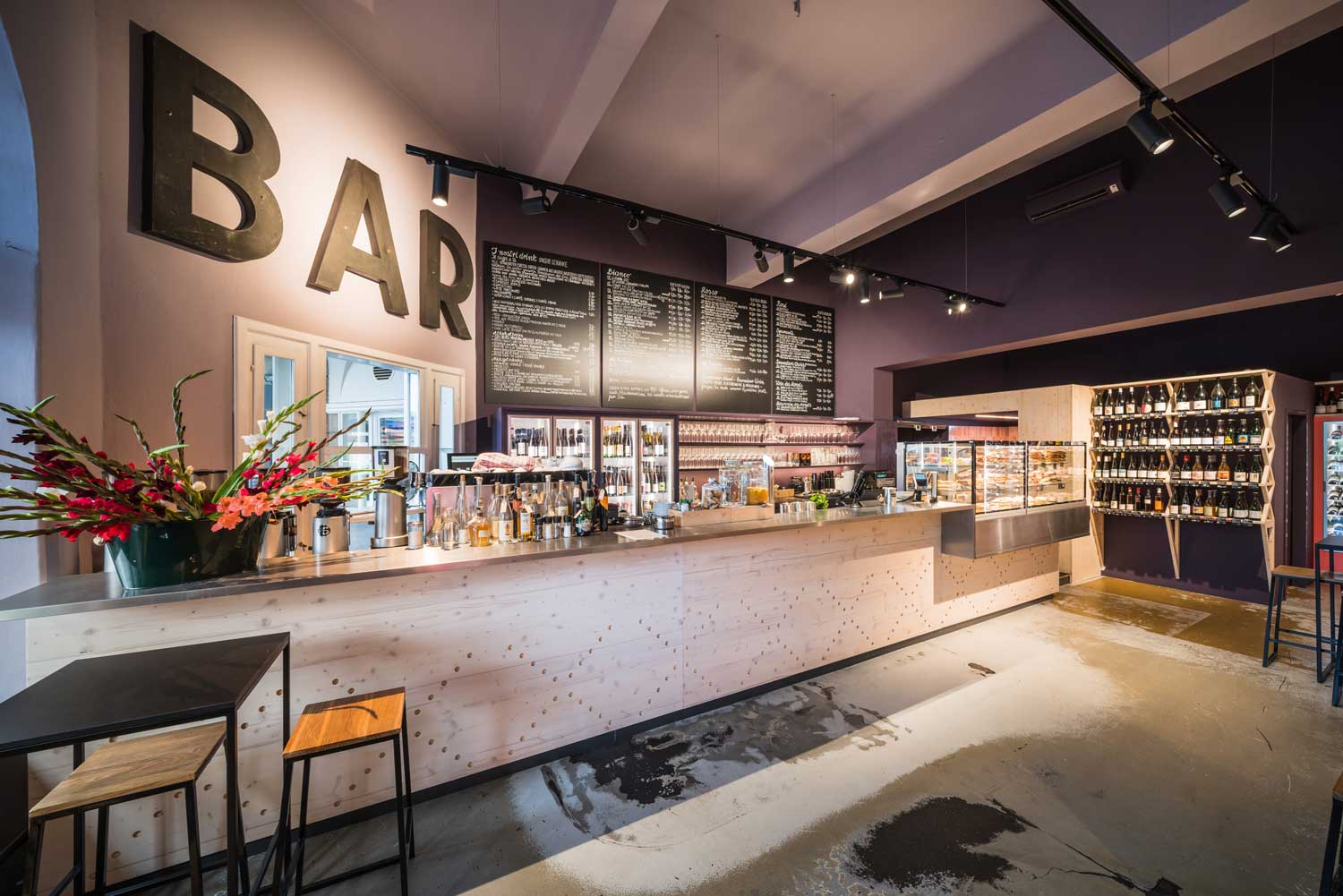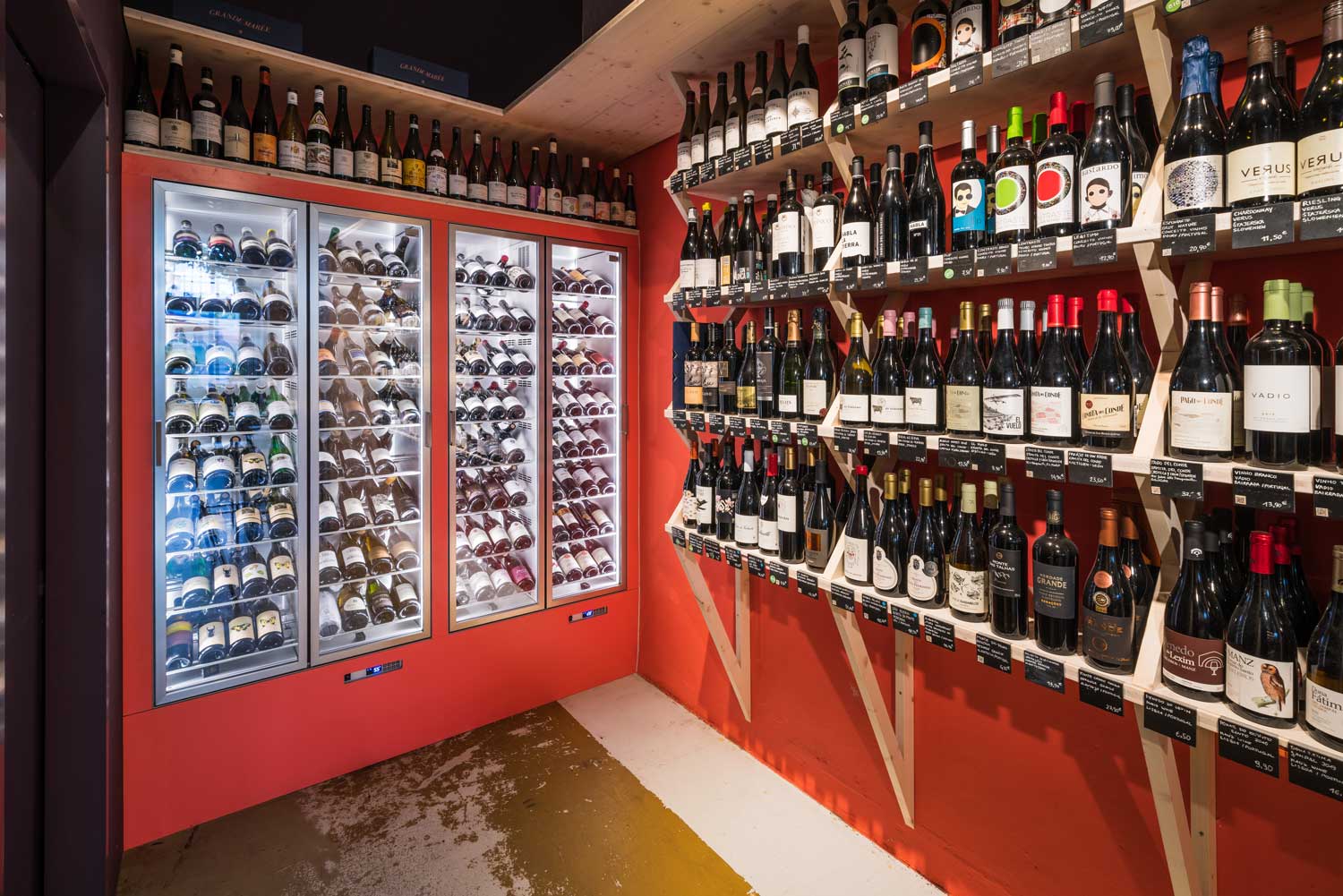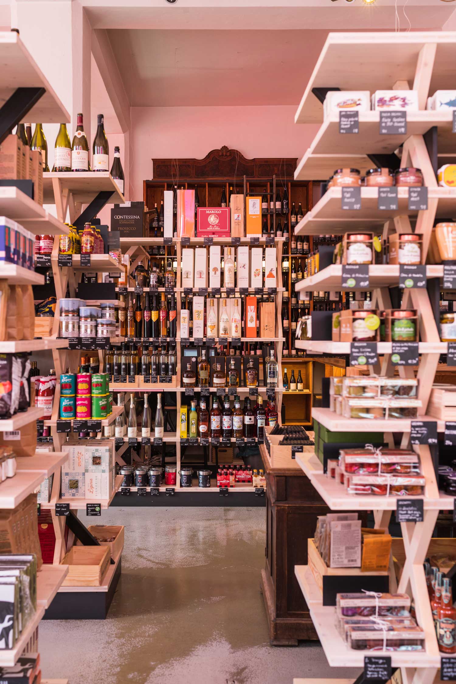 Heute beeindrucken die hellen Räume mit schlichten Bänken, hohen Weinregalen und einer Fülle an farbenfroh verpackten Spezialitäten. Die sonnenüberflutete Terrasse mit Blick auf den Bahnhofsvorplatz ist wie geschaffen für einen Latte Macchiato oder ein Glas Wein.