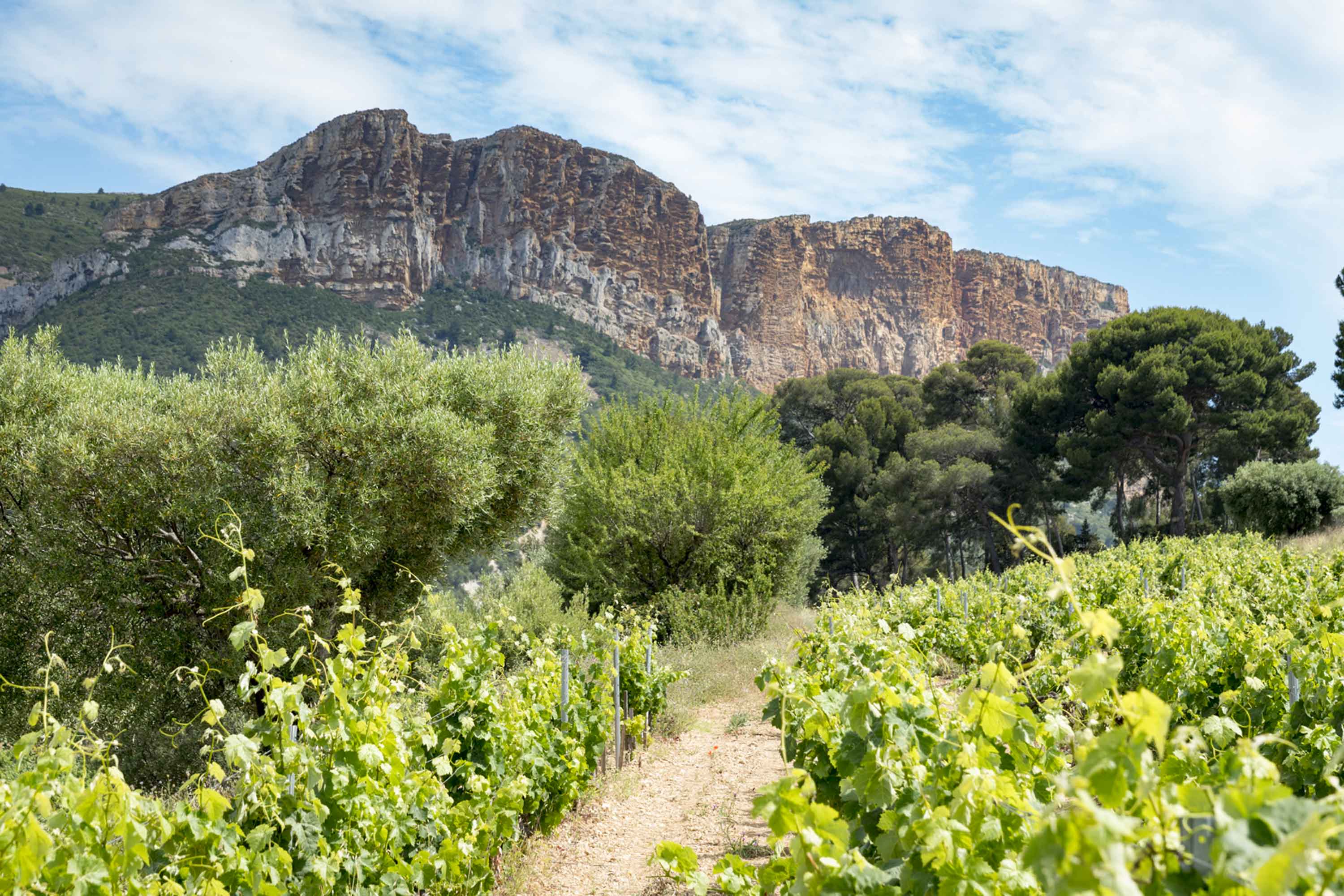 Es ist ein malerischer Fischerort nur wenige Kilometer östlich von Marseille, der der kleinen Appellation Cassis in der Provence ihren Namen gibt. Man muss, wie in touristischen Weinbaugebieten am Mittelmeer fast üblich, lange nach qualitativ hochwertigen Weinen suchen. Wir haben sie mit der „Domaine du Bagnol“ gefunden. Das geschichtsträchtige Weingut wird seit 2003 von der Familie Jean Luis Genovesi nach biodynamischen Prinzipien bewirtschaftet. Von großer Bedeutung für die Weine ist das besondere Terroir. Die Weinberge sind eingebettet zwischen den Hügeln des Hinterlandes und der offenen Meerfront. Ton und Kalkstein finden sich im Erdreich. Weiße Felsformationen und helle Böden reflektieren das berühmte Licht der Provence. Eine kühle Brise aus der Bucht von Cassis und der kalte Mistral sorgen für Abkühlung der Trauben an heißen Sommertagen.