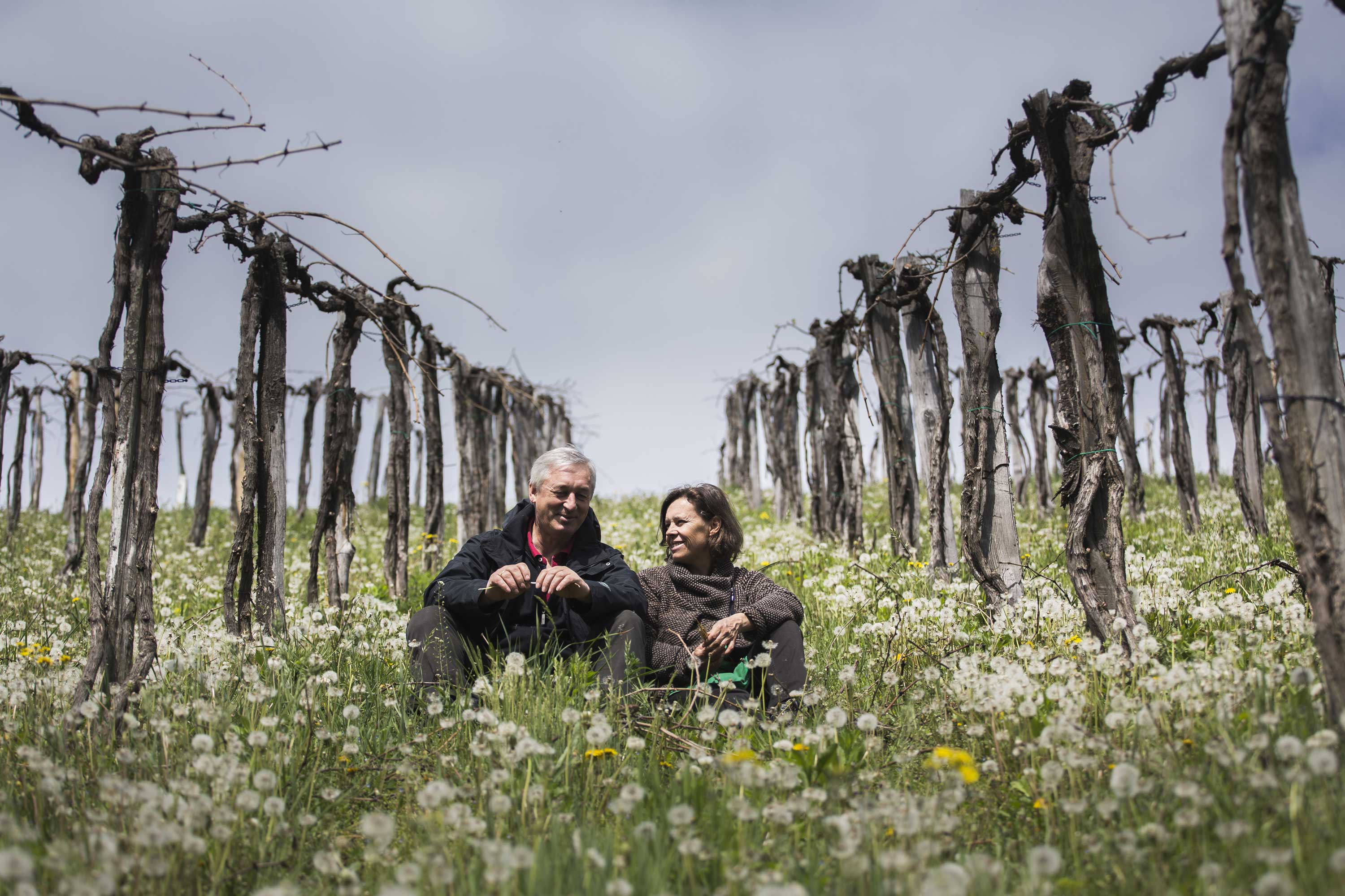 Von Anfang an arbeitet das Ehepaar biodynamisch, seit 2003 sind ihre Weine demeter zertifiziert. Das Bodenleben wird durch eigenen Kompost gefördert. Um der Pflanze Schubkraft zu verleihen, wird in homöopathischen Dosen Hornmist zugeführt. Während des Wachstums erhält sie Zugkraft durch das Ausbringen von Hornkiesel. Bei Trockenstress, Kälteeinbrüchen oder großer Nässe wird der Rebstock durch selbst hergestellte Tees unterstützt. Die biodynamische Behandlung von Boden und Pflanze regt die Rebstöcke dazu an, kontinuierlich zu arbeiten. Im Gegensatz zu konventioneller Düngung ist ihr Wachstum jedoch nie übertrieben stark.