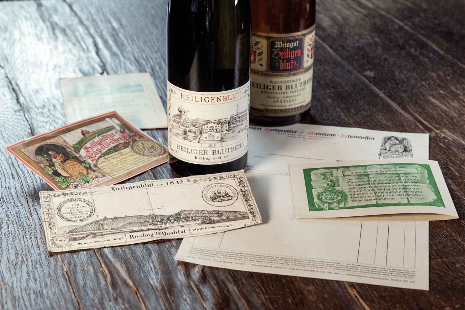 Schenkt man der Legende Glauben, beginnt die Geschichte des Weinguts Heiligenblut im Alzeyer Hinterland mit der Ermordung der Christen durch Hunnenkönig Attila im Jahr 454 n. Chr. auf dem Heiligen Blutberg. Um an dieses grausame Ereignis zu erinnern, lies der Heilige Bonifatius etwa 300 Jahre später dort eine Kapelle errichten und pflanzte die ersten Reben. Wie viel Wahrheit diese Sage in sich birgt, bleibt wohl verborgen, aber die Lagen Heiliger Blutberg und Kapellenberg finden sich noch heute auf den Etiketten. Der Mythos wird also weiter getragen und ein Quäntchen Wahrheit steckt wohl in ihm. Mit Sicherheit aber lässt sich die Geschichte bis ins 19. Jahrhundert zurückverfolgen. Friedensrichter und späterer Tribunalrichter Joseph A. Emele rekultivierte diesen Ort für eine beträchtliche Summe, errichtete Bruchsteinmauern und Terrassen für die Weinberge und ließ die Erde wieder aufschütten. Im Zentrum wurde das Betriebsgebäude samt Keller gebaut, wie es auch noch heute den Flaschen zu sehen ist. Für geraume Zeit nutzte es ein wohlhabender Unternehmer aus Hamburg als Sommerresidenz, füllte aber auch eigene Weine ab. Erst 1924 gelangt das Weingut durch Leonard Hannemann in den heutigen Familienbesitz. Aufgrund der gemachten Erfahrungen in Frankreich und Österreich führte er die Drahtrahmenerziehung ein und trieb ebenfalls die Mechanisierung voran.