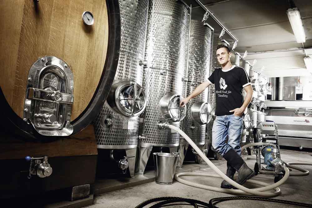 Schon viele Jahren verzichten die Brüder auf Herbizide, seit Jahrgang 2017 sind die Weine bio-zertifiziert. Gerade haben die innovativen Geschwister, die seit 2015 von Schwester Simone im Betrieb unterstützt werden, ihr neues Kellereigebäude eingeweiht. Es liegt mitten in der besten und heißesten Freinsheimer Lage, dem "Schwarzen Kreuz", und ist komplett auf Nachhaltigkeit ausgelegt: Der Keller befindet sich weitgehend unter der Erde, sodass nicht künstlich klimatisiert werden muss. Den Strom liefert eine Fotovoltaikanlage auf dem Dach, das Wasser stammt aus der eigenen Zisterne.