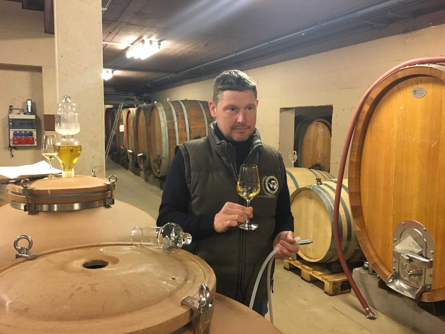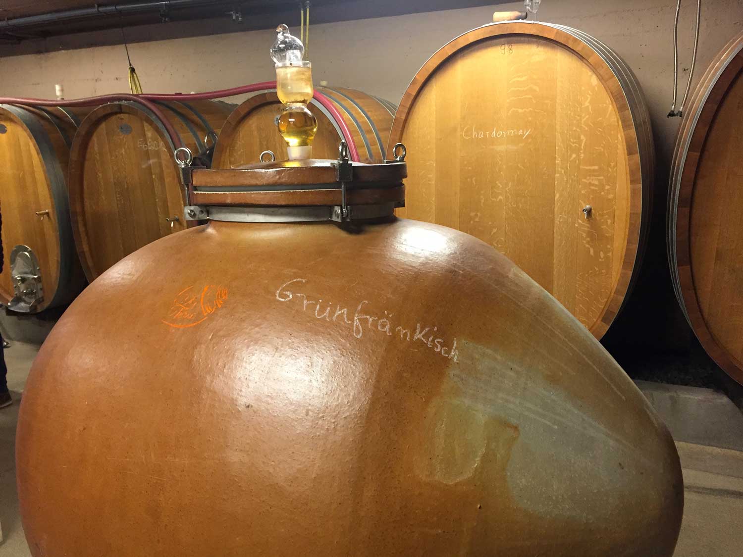 Stefan Sander gehört zu den rund zwanzig Winzerinnen und Winzern in Deutschland, die historische Rebsorten anbauen. 2016 pflanzte Sander weißen Grünfränkisch, ein Jahr später folgte der rote Fränkisch Burgunder. 2018 war der erste Grünfränkisch-Jahrgang, den Sander vinifizierte. Wir durften noch vor dem Abfüllen eine Fassprobe degustieren. Hier lesen Sie unseren Bericht