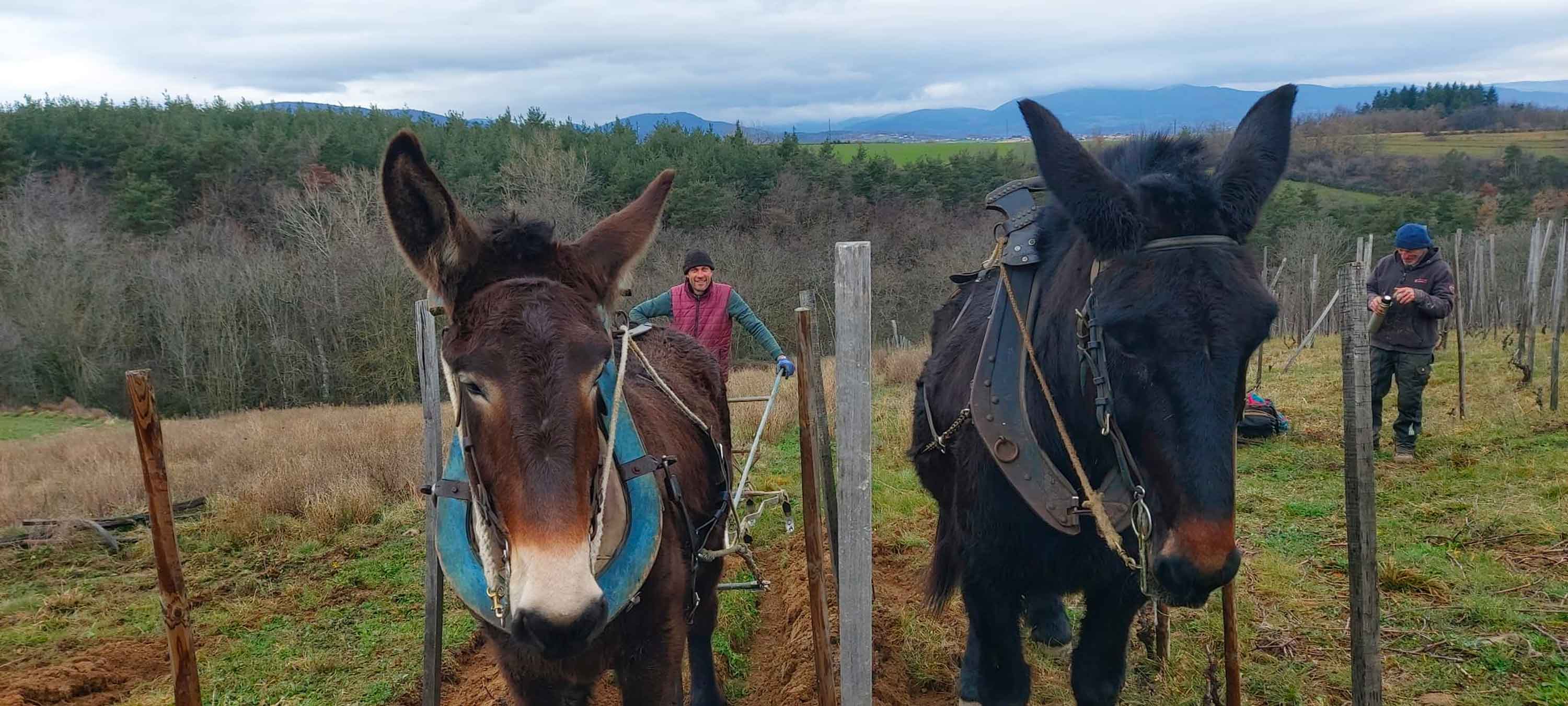 Und so präsentieren sich seine Naturweine zumeist so erstaunlich klar und reintönig, dass selbst die Weinkontrolleure am Saint Joseph der Domaine de l’Iserand nichts zu beanstanden haben und dieser sogar seine Herkunftsbezeichnung auf dem Etikett führen darf. Das ist bei Naturweinen eher selten der Fall. Meistens können diese, weil sie von der Norm abweichen, nur als „Landwein“ vermarktet werden. „Ich bin stolz darauf, die Bezeichnung Saint Joseph mit einem natürlich hergestellten Wein vertreten zu können. Es ist machbar. Nur ein Mal habe ich eine Verwarnung bekommen.“ Die Weine der Domaine de l’Iserand sind also durchaus ernst zu nehmen. Auch wenn dieser Saint Joseph auf dem Etikett Eselsohren trägt statt eines Heiligenscheins. Aber die erzählen eine schöne Geschichte von einem leidenschaftlichen Winzer, der sich selbst vielleicht nicht allzu ernst nimmt, das, was er tut, aber durchaus. „Mein Großvater nutzte im Weinberg ein Maultier, Coppi, benannt nach dem berühmten Radrennfahrer. Ich habe diese Tradition fortgeführt und mittlerweile drei Maultiere, um den Boden möglichst schonend zu pflügen.“