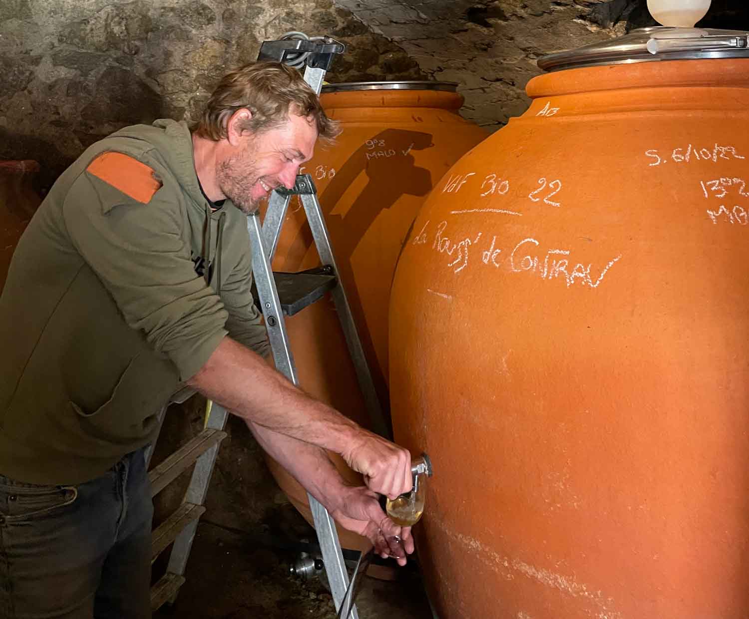 Eine besondere Leidenschaft für Wein hatte Jean-François Malsert schon immer. Sein Großvater war Winzer gewesen, hatte seine Weinberge in der berühmten Appellation Saint Joseph an der nördlichen Rhône jedoch verkauft, als er in Rente ging. Der Enkel entschied sich dennoch für den Beruf. Nach seinem Master in Önologie zog es ihn nach Australien, um dort Berufserfahrung zu sammeln. Zurück in Frankreich – ohne eigene Weinberge – bot sich ihm dann zunächst die Gelegenheit, eine Weinbar zu eröffnen. Im „Carafes en Folie“ („Karaffen-Wahnsinn“) in Tournon-sur-Rhône, knapp 20 km flussaufwärts von Valence, tischte Jean-François Malsert Weine auf, die möglichst natürlich produziert und ausgebaut waren, Weine mit Lebendigkeit und Trinkfluss, wie er sie selbst bevorzugte. Damit hatte er offensichtlich einen Nerv getroffen – die Bar wurde recht populär.