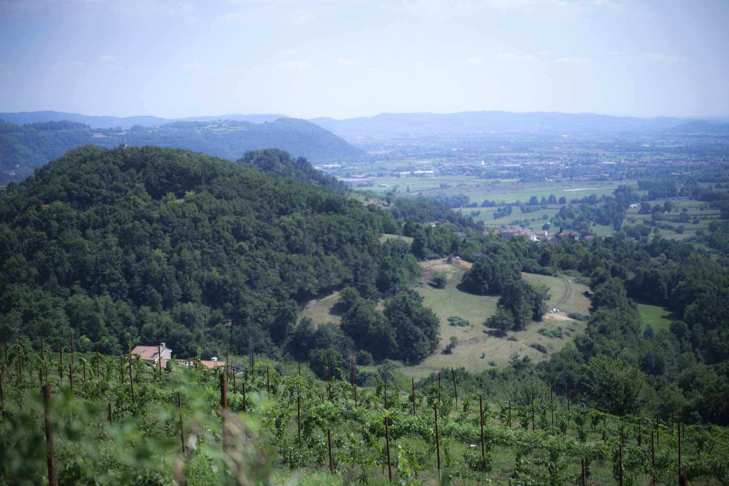 Marco ist ein sehr gebildeter und nachdenklicher Winzer, der sein Tun auch intellektuell zu durchdringen sucht – soweit die Mysterien des Weins das zulassen. Dass der biologische und biodynamische Landbau der bestmögliche Weg ist, davon ist er überzeugt, geht aber in einigen Dingen noch sehr viel weiter. Gemeinsam mit anderen Landwirten und Agrarexperten hat er beispielsweise mit Blick auf die historische Praxis Regeln für den Landbau im Agno-Tal aufgestellt. Die „Regole della Valle dell’Agno“ schreiben unter anderem vor, dass maximal 80 Prozent der Betriebsfläche für den Landbau genutzt werden dürfen – Marco selbst nutzt nur 75 Prozent. Der Rest bleibt als Wiesen- und Waldflächen sich selbst überlassen. So befindet sich rund um die Monokulturen ein natürliches Habitat für Nützlinge – viele Bedrohungen für die Reben regulieren sich dadurch von ganz alleine.