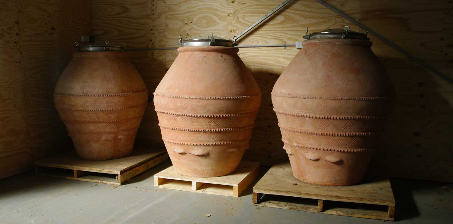 Die Amphoren werden wie einst bei den Mönchen aus lokalem rotem Ton („terra rossa“) handgefertigt. Damit schließt sich auch hier ein jahrhundertealter Kreislauf aus Trauben, Erde und Tradition.